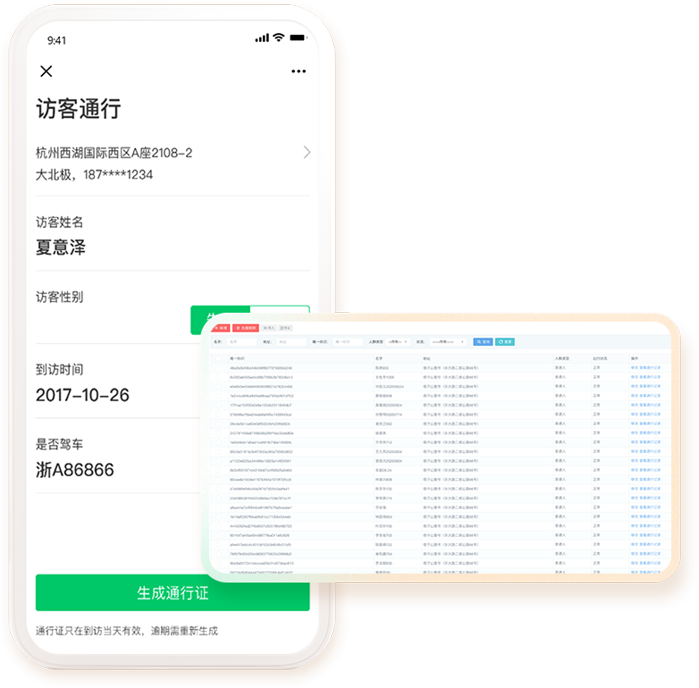 提供小区访客功能,支持自助填写信息和生成二维码进入。
